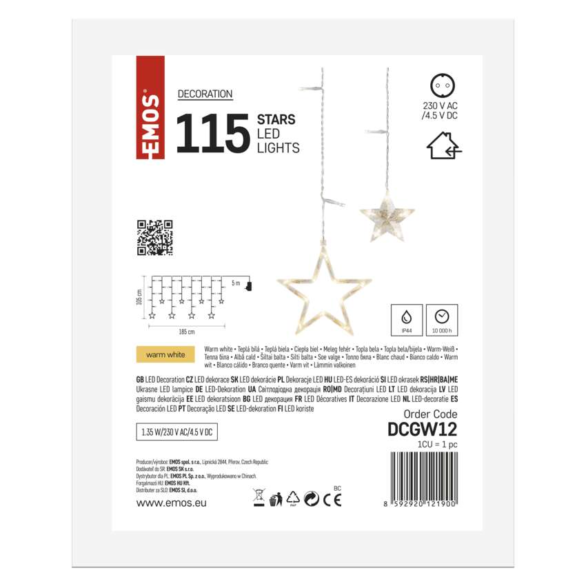 typ zasilania: zasilacz sieciowy, kształt: gwiazda, długość przewodu: 5 m, do wysokości choinki: nie dotyczy, napięcie wejściowe: 230 V AC, napięcie wyjściowe: 4,5 V DC, możliwość podłączenia: nie, stopień ochrony: IP44, żywotność: 10 000 godzin, okres gwarancyjny: 2 lata, opakowanie: 1 szt., pudełko