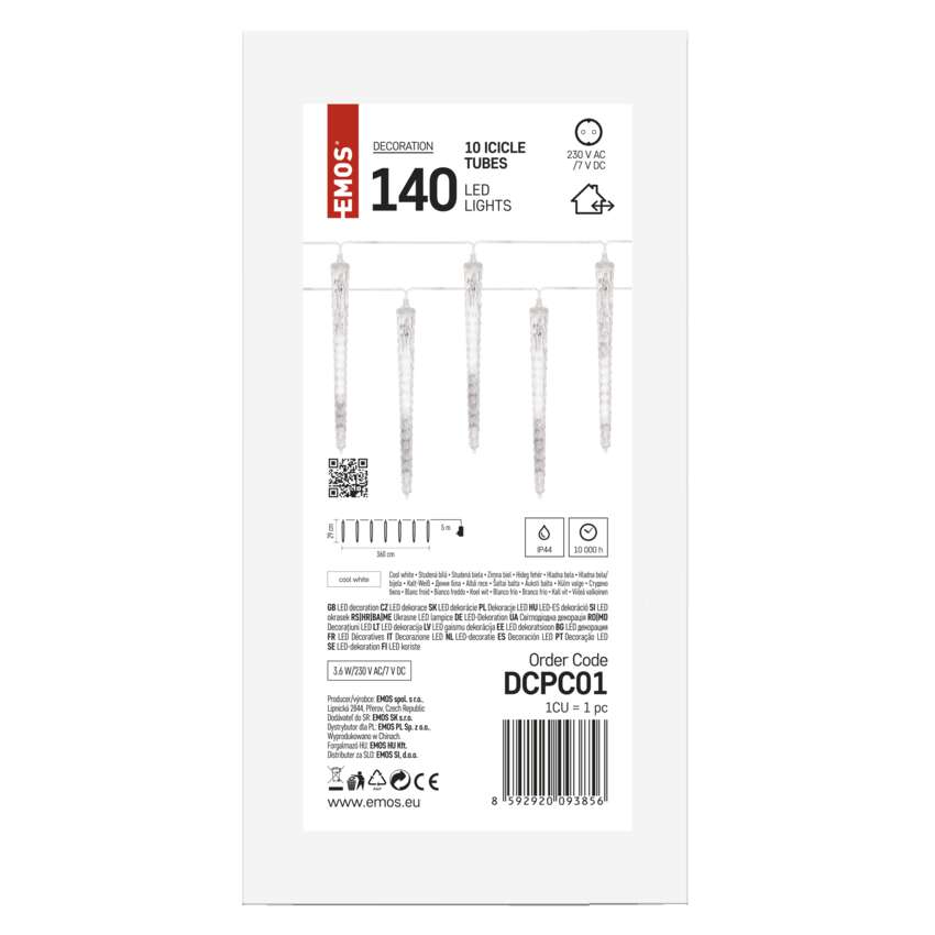 typ zasilania: zasilacz sieciowy, źródło światła: LED, ilość LED: 140, długość przewodu: 5 m, kolor przewodów: transparentny, moc: 3,6 W, napięcie wejściowe: 230 V AC, napięcie wyjściowe: 7 V DC, stopień ochrony: IP44, żywotność: 10 000 godzin, materiał: tworzywo, okres gwarancyjny: 2 lata, opakowanie: 1 szt., pudełko