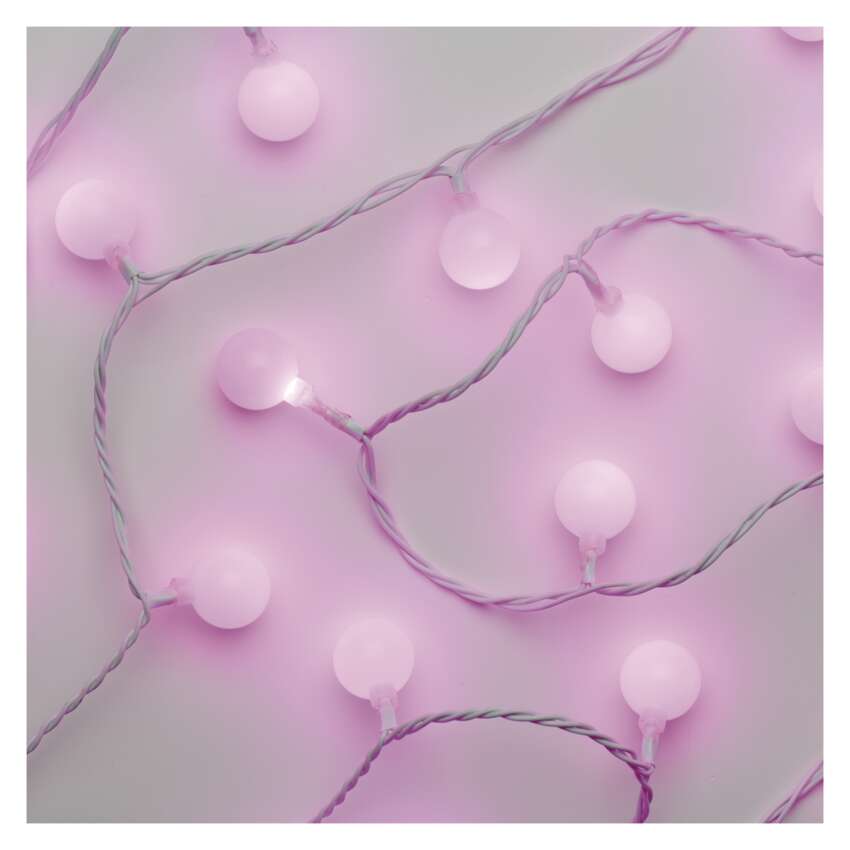 typ zasilania: zasilacz sieciowy, kształt: kulka, ilość LED: 40, odstęp między diodami LED: 10 cm, wielkość diod LED: 25 mm, długość przewodu: 5 m, do wysokości choinki: 100 cm, kolor przewodów: biały, moc: 3,6 W, napięcie wejściowe: 230 V AC, napięcie wyjściowe: 31 V DC, możliwość podłączenia: nie, stopień ochrony: IP44, żywotność: 10 000 godzin, materiał: PVC, okres gwarancyjny: 2 lata, opakowanie: 1 szt., pudełko