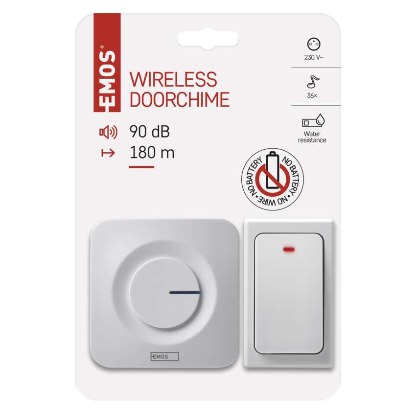 podłączenie przycisku: bezprzewodowe, zasięg max.: 180 m, ilość melodii: 36, sposób parowania: automatyczne parowanie – self-learning, funkcje specjalne: przycisk bez baterii, sygnalizacja optyczna w dzwonku, sygnalizacja optyczna w przycisku, maksymalna głośność dzwonienia: 90 dB, możliwość dodania kolejnego przycisku: tak, max. 6, ilość przycisków w komplecie: 1 szt., dodatkowy przycisk (wymienny): P5729T, wodoodporny przycisk: IP44, zasilanie przycisku: bez zasilania, ilość odbiorników w komplecie: 1 szt., regulacja głośności: tak, 4 poziomy, częstotliwość: 433 MHz, kolor: biały, zasilanie jednostki głównej: 230 V AC, wymiary dzwonku: 73 × 73 × 81 mm, wymiary przycisk do dzwonka: 22 × 49 × 82 mm, opakowanie: 1 szt., blister, okres gwarancyjny: 2 lata