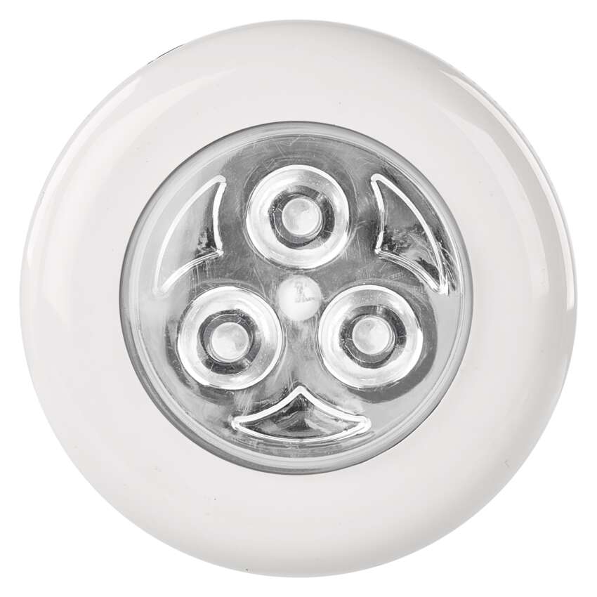 źródło światła: 3× LED o średnicy 5 mm, maksymalny strumień świetlny: 10 lm, barwa światła: zimna biel, zasilanie: 3× 1,5 V AAA (w zestawie), wyłącznik, tryby: #, czujnik ruchu: nie, maks. wyjście razem: nie dotyczy, wymiary: 65 × 23 × 65 mm, opakowanie: 3 szt., blister, okres gwarancyjny: 2 lata