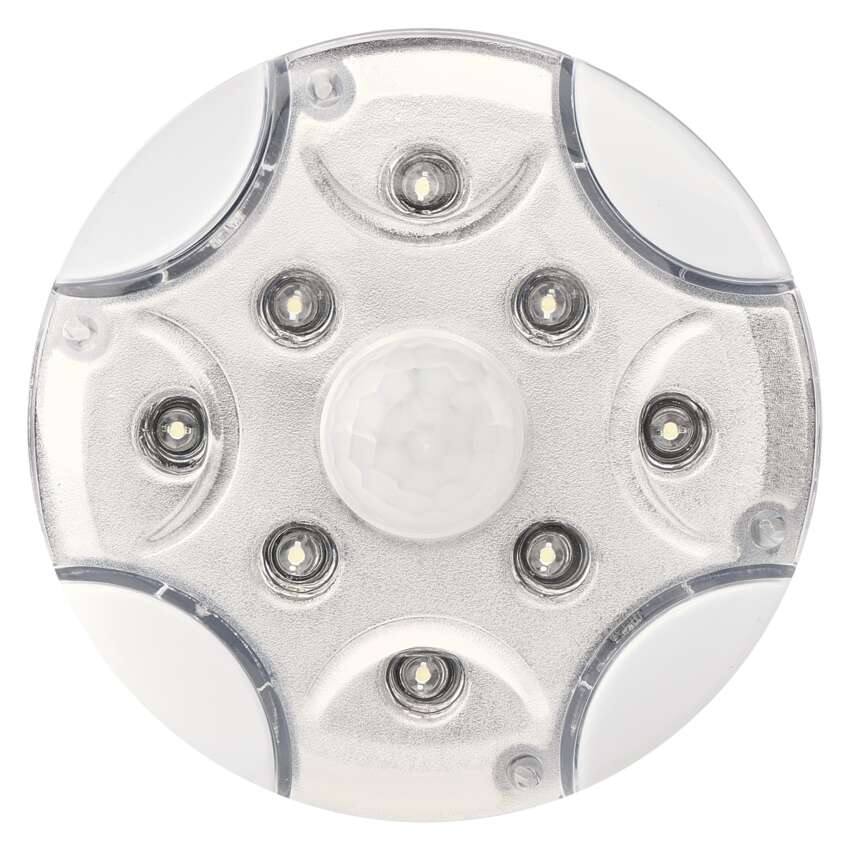 źródło światła: 8× LED o średnicy 5 mm, maksymalny strumień świetlny: 60 lm, maks. zasięg: 15 m, barwa światła: zimna biel, zasilanie: 3× 1,5 V AA, wyłącznik, tryby: on/off/auto, automatyczne włączenie/wyłączenie, czujnik zmierzchu, czujnik ruchu, opóźnienie czasowe: 25 sekund +/- 5 sekundy, maks. wyjście razem: nie dotyczy, wymiary: 90 × 37 mm, opakowanie: 1 szt., blister, okres gwarancyjny: 2 lata