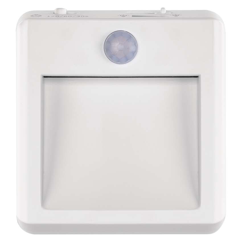 źródło światła: SMD LED, maksymalny strumień świetlny: 15 lm, maks. zasięg: 5 m, barwa światła: ciepła biel, zasilanie: 230 V, wyłącznik, tryby: #, automatyczne włączenie/wyłączenie, czujnik zmierzchu, czujnik ruchu, opóźnienie czasowe: 30/60/120 sekund, maks. wyjście razem: nie dotyczy, wymiary: 74 × 54 × 80 mm, opakowanie: 1 szt., blister papierowy, okres gwarancyjny: 2 lata, moc: 0,5 W maks.