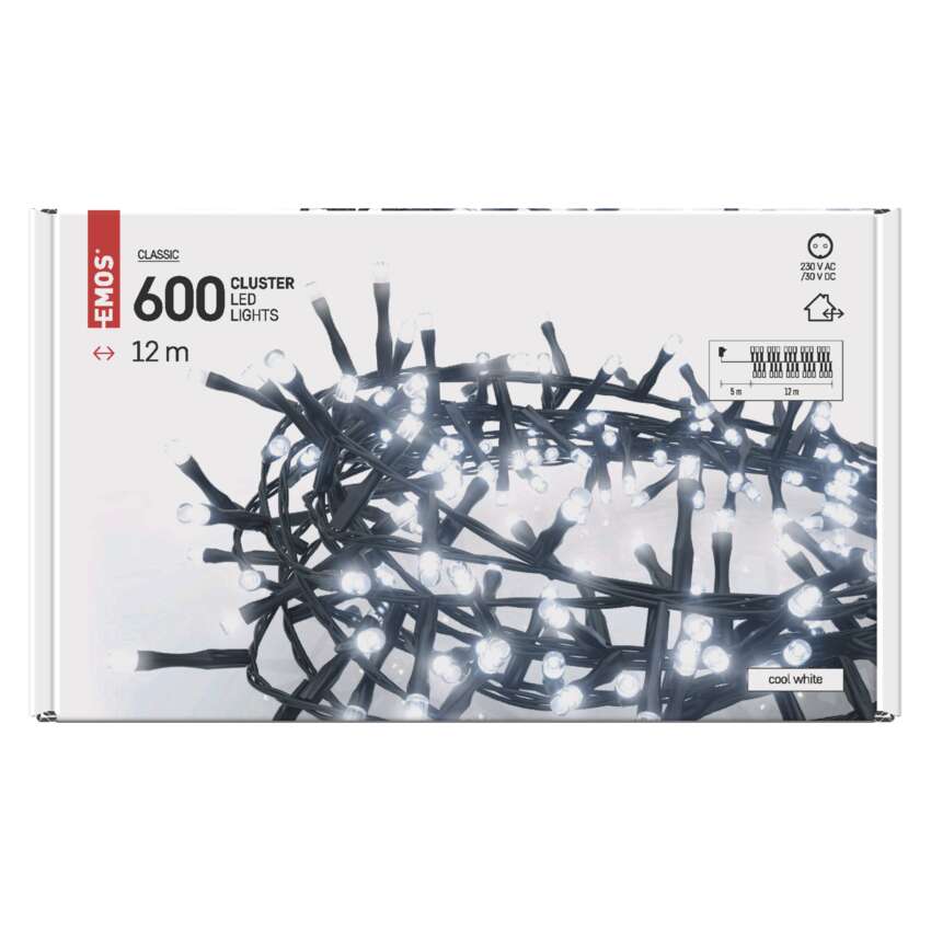 typ zasilania: zasilacz sieciowy, kształt: klasyczny, ilość LED: 600, odstęp między diodami LED: 2 cm, wielkość diod LED: 3 mm, długość przewodu: 5 m, do wysokości choinki: nie dotyczy, kolor przewodów: czarny, moc: 3,6 W, napięcie wejściowe: 230 V AC, napięcie wyjściowe: 30 V DC, możliwość podłączenia: nie, stopień ochrony: IP44, żywotność: 10 000 godzin, materiał: PVC, okres gwarancyjny: 2 lata, opakowanie: 1 szt., pudełko