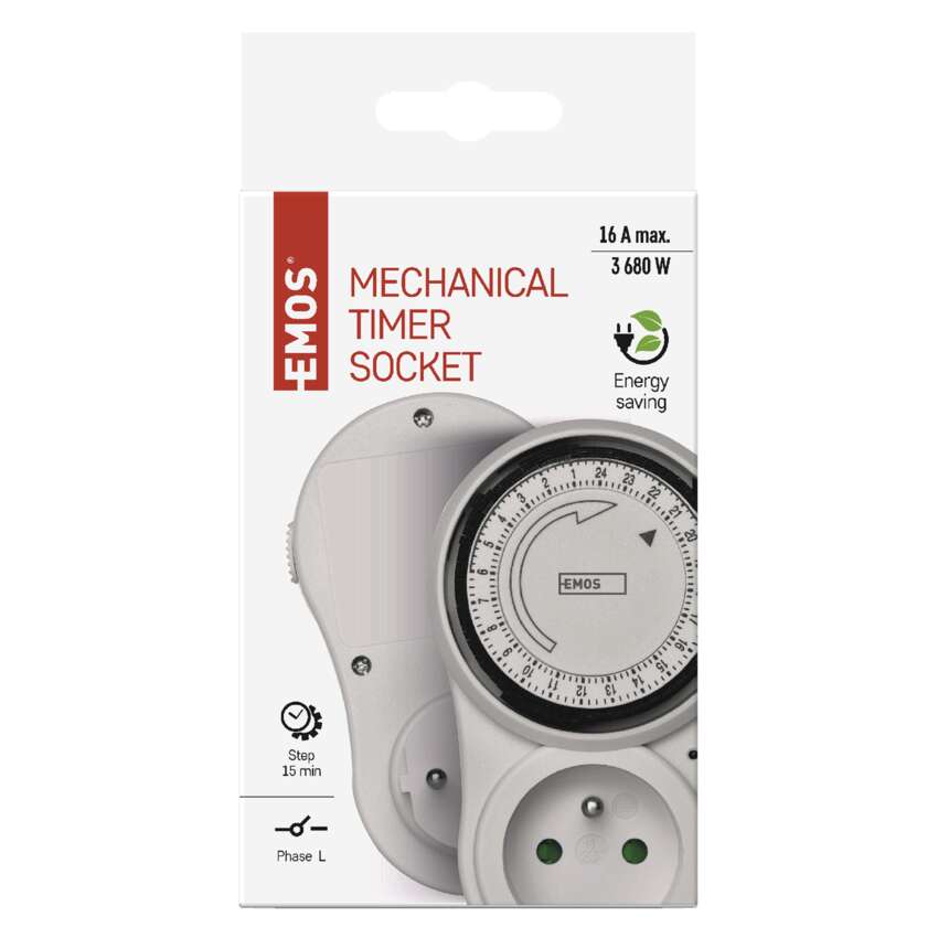 rodzaj: mechaniczny, napięcie/prąd: 230 V~/16 A max., maksymalne obciążenie: 3 680 W, minimalny czas włączenia: 15 minut, możliwość ręcznego włączenia, włącza: przewód fazowy, ilość włączeń na dzień: 96, stopień ochrony: IP20, przesłony torów prądowych, wymiary: 75 × 123 × 75 mm, opakowanie: 1 szt., pudełko, okres gwarancyjny: 2 lata