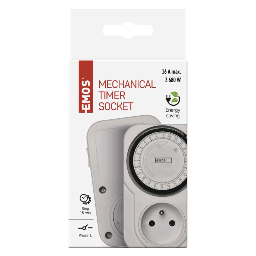 rodzaj: mechaniczny, napięcie/prąd: 230 V~/16 A max., maksymalne obciążenie: 3 680 W, minimalny czas włączenia: 15 minut, możliwość ręcznego włączenia, włącza: przewód fazowy, ilość włączeń na dzień: 96, stopień ochrony: IP20, przesłony torów prądowych, wymiary: 72 × 118 × 75 mm, opakowanie: 1 szt., pudełko, okres gwarancyjny: 2 lata