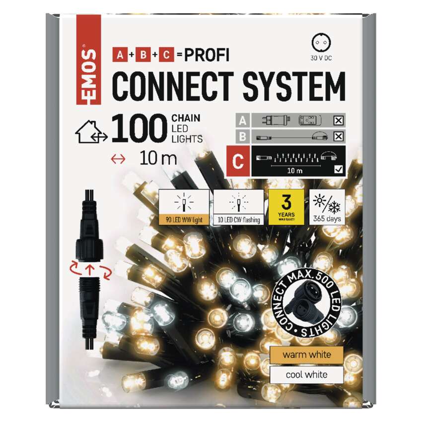 typ zasilania: zasilacz sieciowy (brak w zestawie), kształt: klasyczny, ilość LED: 100, odstęp między diodami LED: 10 cm, wielkość diod LED: 7 mm, długość przewodu: 10 cm, do wysokości choinki: nie dotyczy, kolor przewodów: czarny, moc: max. 6 W, napięcie wejściowe: 30 V DC, możliwość podłączenia: tak, stopień ochrony: IP44, żywotność: 10 000 godzin, materiał: guma, okres gwarancyjny: 3 lata, opakowanie: 1 szt., pudełko