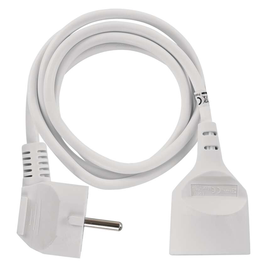 długość: 1,5 m, ilość gniazd: 1, maksymalne obciążenie: 3 680 W, napięcie: 250 V~, prąd: 16 A max., przekrój przewodów: 1,0 mm², kolor: biały, przewód: H05VV-F3G, materiał gniazda i wtyczki: tworzywo, typ izolacji: PVC, stopień ochrony: IP20, przesłony torów prądowych, okres gwarancyjny: 2 lata, opakowanie: 1 szt., zawieszka