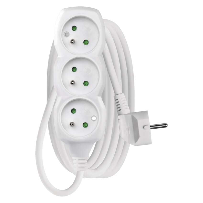 długość: 3 m, ilość gniazd: 3, maksymalne obciążenie: 2 300 W, napięcie: 250 V~, prąd: 10 A max., przekrój przewodów: 1,0 mm², kolor: biały, przewód: H05VV-F3G, materiał gniazda i wtyczki: tworzywo, typ izolacji: PVC, stopień ochrony: IP20, przesłony torów prądowych, okres gwarancyjny: 2 lata, opakowanie: 1 szt., zawieszka