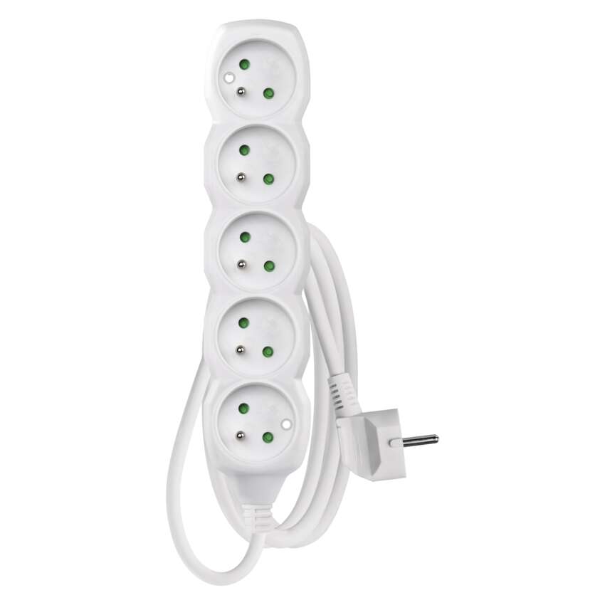 długość: 1,5 m, ilość gniazd: 5, maksymalne obciążenie: 3 680 W, napięcie: 250 V~, prąd: 16 A max., przekrój przewodów: 1,0 mm², kolor: biały, przewód: H05VV-F3G, materiał gniazda i wtyczki: tworzywo, typ izolacji: PVC, stopień ochrony: IP20, przesłony torów prądowych, okres gwarancyjny: 2 lata, opakowanie: 1 szt., zawieszka