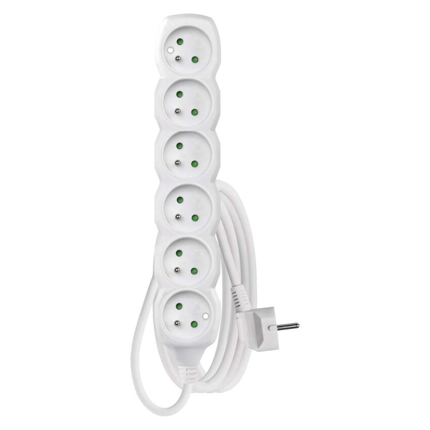 długość: 3 m, ilość gniazd: 6, maksymalne obciążenie: 2 300 W, napięcie: 250 V~, prąd: 10 A max., przekrój przewodów: 1,0 mm², kolor: biały, przewód: H05VV-F3G, materiał gniazda i wtyczki: tworzywo, typ izolacji: PVC, stopień ochrony: IP20, przesłony torów prądowych, okres gwarancyjny: 2 lata, opakowanie: 1 szt., zawieszka
