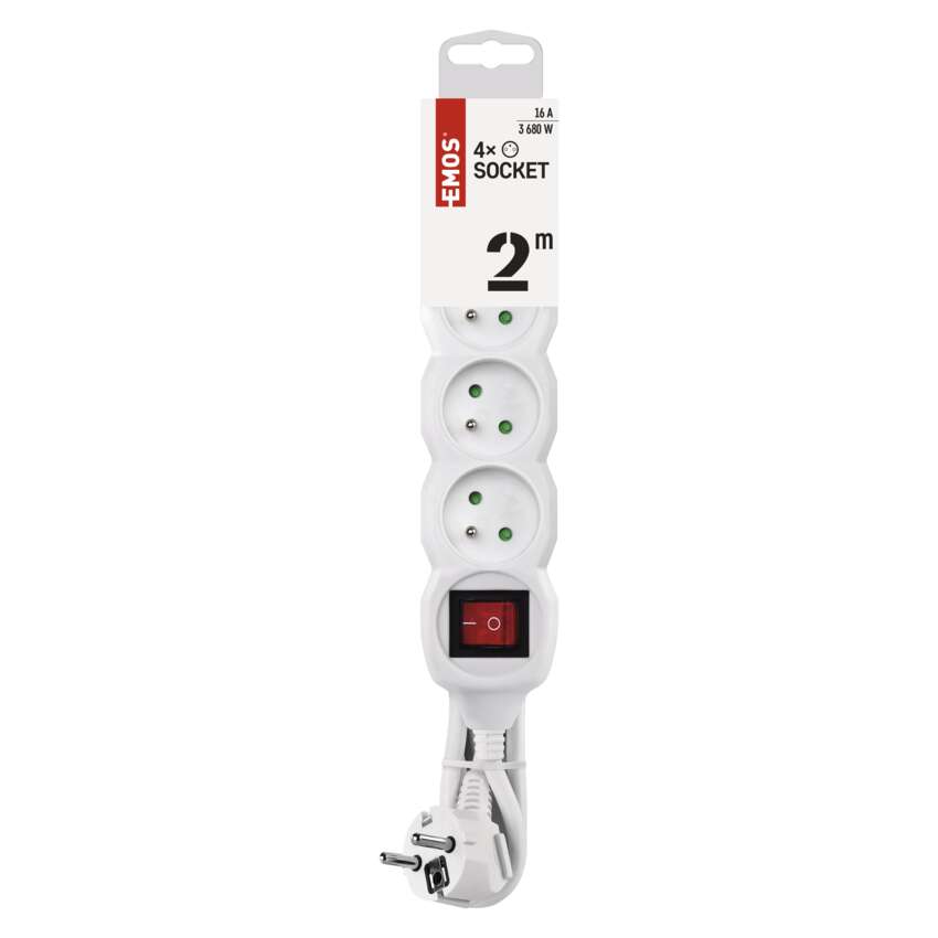 długość: 2 m, ilość gniazd: 4, maksymalne obciążenie: 3 680 W, napięcie: 250 V~, prąd: 16 A max., przekrój przewodów: 1,0 mm², kolor: biały, przewód: H05VV-F3G, materiał gniazda i wtyczki: tworzywo, typ izolacji: PVC, wyłącznik, stopień ochrony: IP20, przesłony torów prądowych, okres gwarancyjny: 2 lata, opakowanie: 1 szt., zawieszka