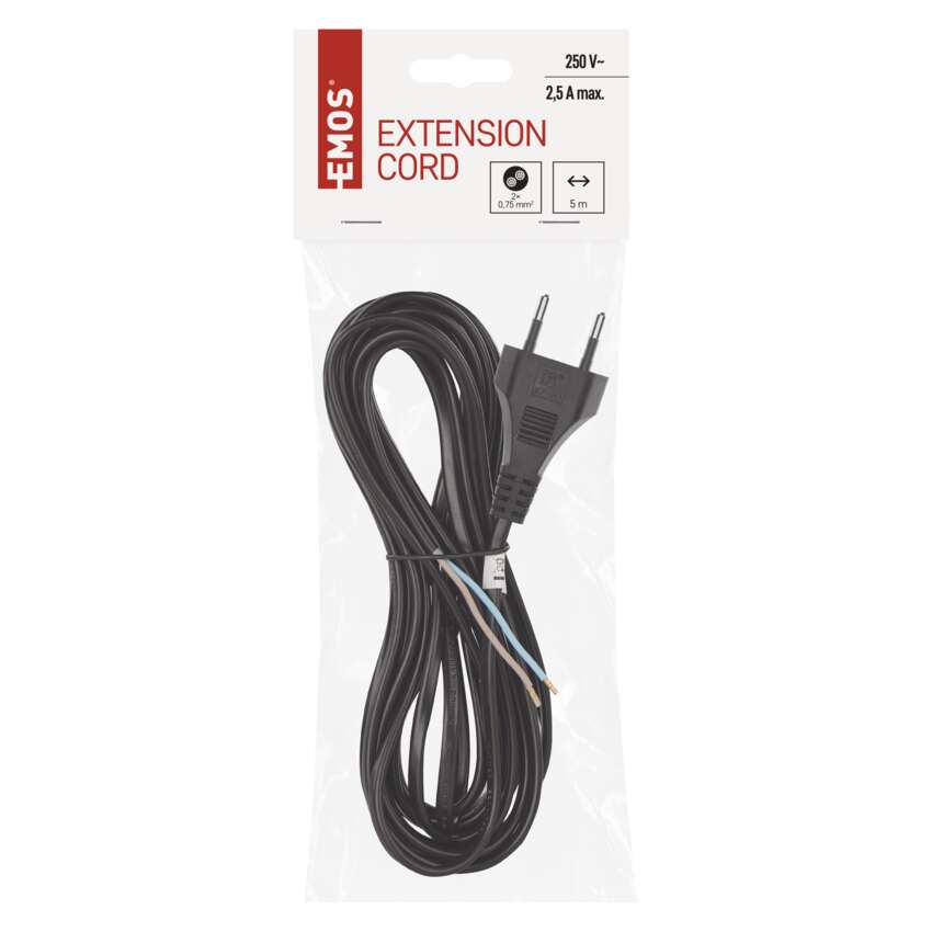 żyła: H03VVH2-F, długość: 5 m, typ izolacji: PVC, kolor: czarny, przekrój przewodów: 2× 0,75 mm², typ: KF-H1 (HY020-F), opakowanie: 1 szt., zawieszka, okres gwarancyjny: 2 lata
