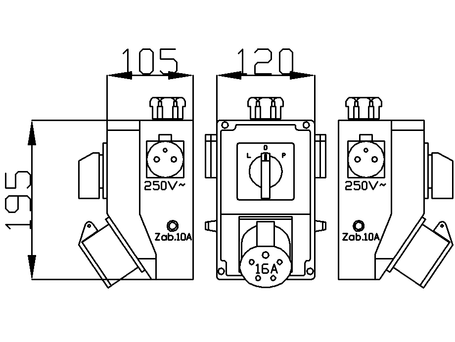 RS-Z Wył.L-0-P, 3P+N+Z 16A, 2x2P+Z 230V szara