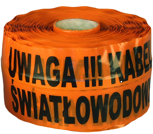 Taśma oznaczeniowa do tras rurociągów i podziemnych kabli energetycznych z wkładką ze stali nierdzewnej (10 mm) i nadrukiem.