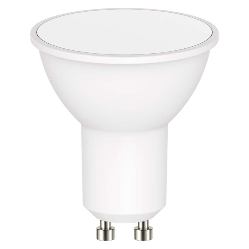 technologia: LED, trzonek (mocowanie żarówki): GU10, barwa światła: RGB, odpowiednik żarówki: 35 W, ściemnialna, kształt: MR16, strumień świetlny: 400 lm, temperatura barwowa: 2 700–6 500 K, moc: 4,8 W, seria: GoSmart, skuteczność świetlna: 83 lm/W, klasa energetyczna: G, kąt świecenia: 120°, żywotność: 20 000 godzin, okres gwarancyjny: 2 lata, współczynnik mocy: 0,48, ilość cykli włącz\wyłącz: 15 000, indeks oddawania barw (CRI): Ra >80, chip LED: SMD, napięcie: 230 V~/50 Hz, wymiary: 50 × 50 × 56,5 mm, opakowanie: 1 szt., pudełko, obsługiwany OS: Android, iOS, kompatybilność: EMOS GoSmart,Tuya,Lidl,Smartlife, protokół: Wi-Fi, sterowanie za pomocą asystentów głosowych, powiadomienia do aplikacji mobilnej, częstotliwość: 2,4 GHz WIFI